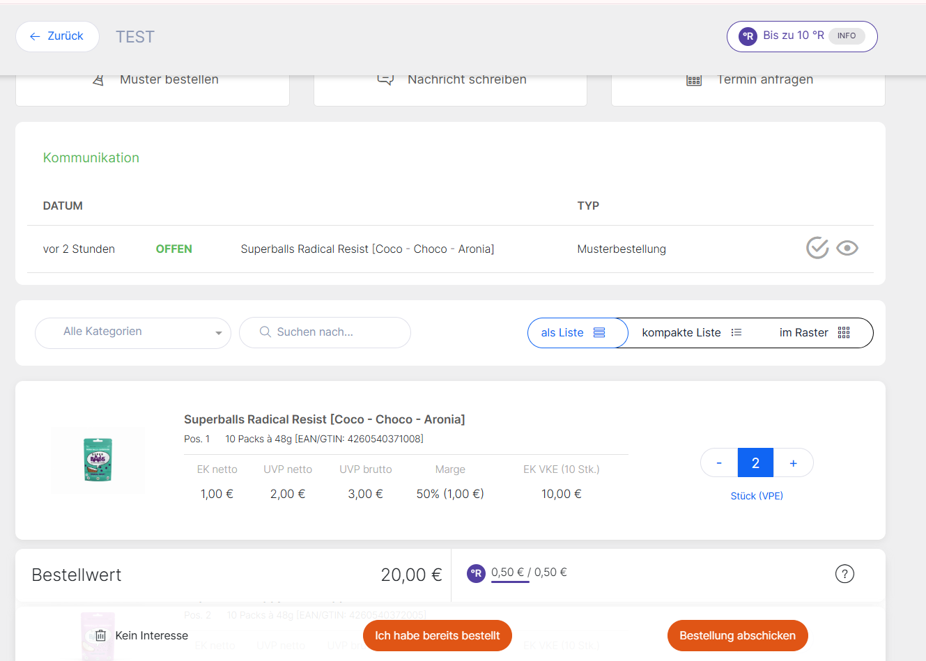Mit „bereits bestellt“ signalisieren Sie dem Hersteller, dass Sie ein Produkt bereits über Ihre Warenwirtschaft oder über einen anderen Kanal bestellt haben (Abb. 1).