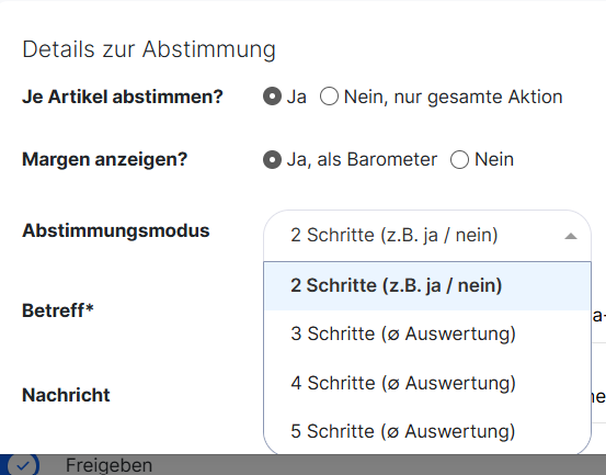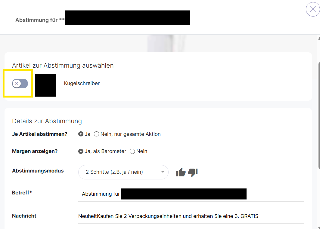 Option: nur über ausgewählte Produkte abstimmen lassen,