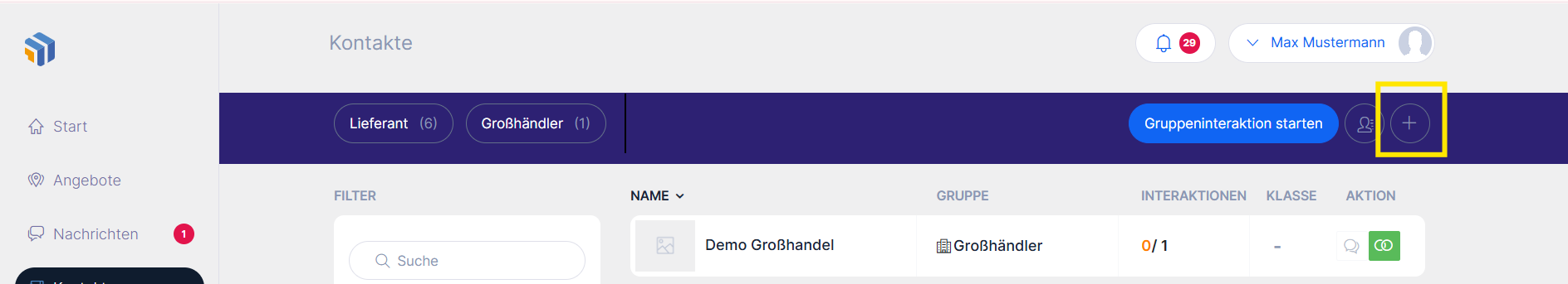 Im Bereich Kontakte finden Sie alle registrierten und im Netzwerk veröffentlichten Lieferanten.