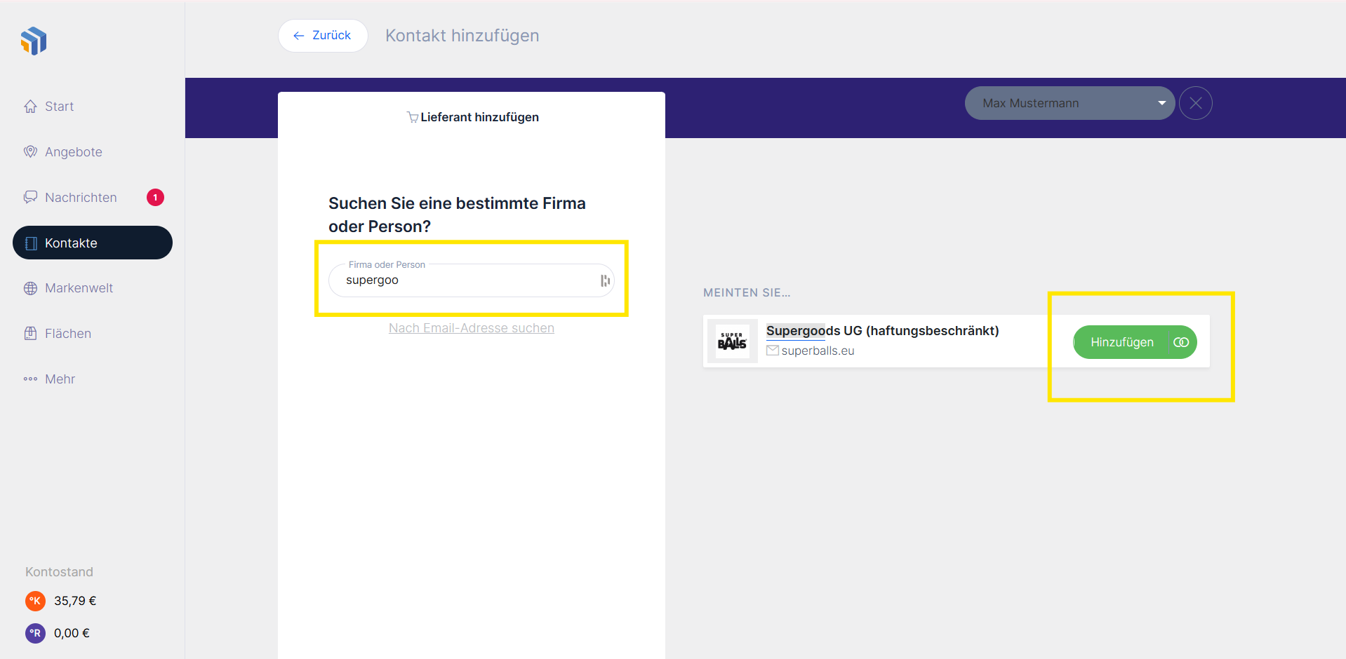 Ist der Lieferant im Netzwerk registriert, können Sie ihn direkt Ihrem Adressbuch hinzufügen (Abb. 3).