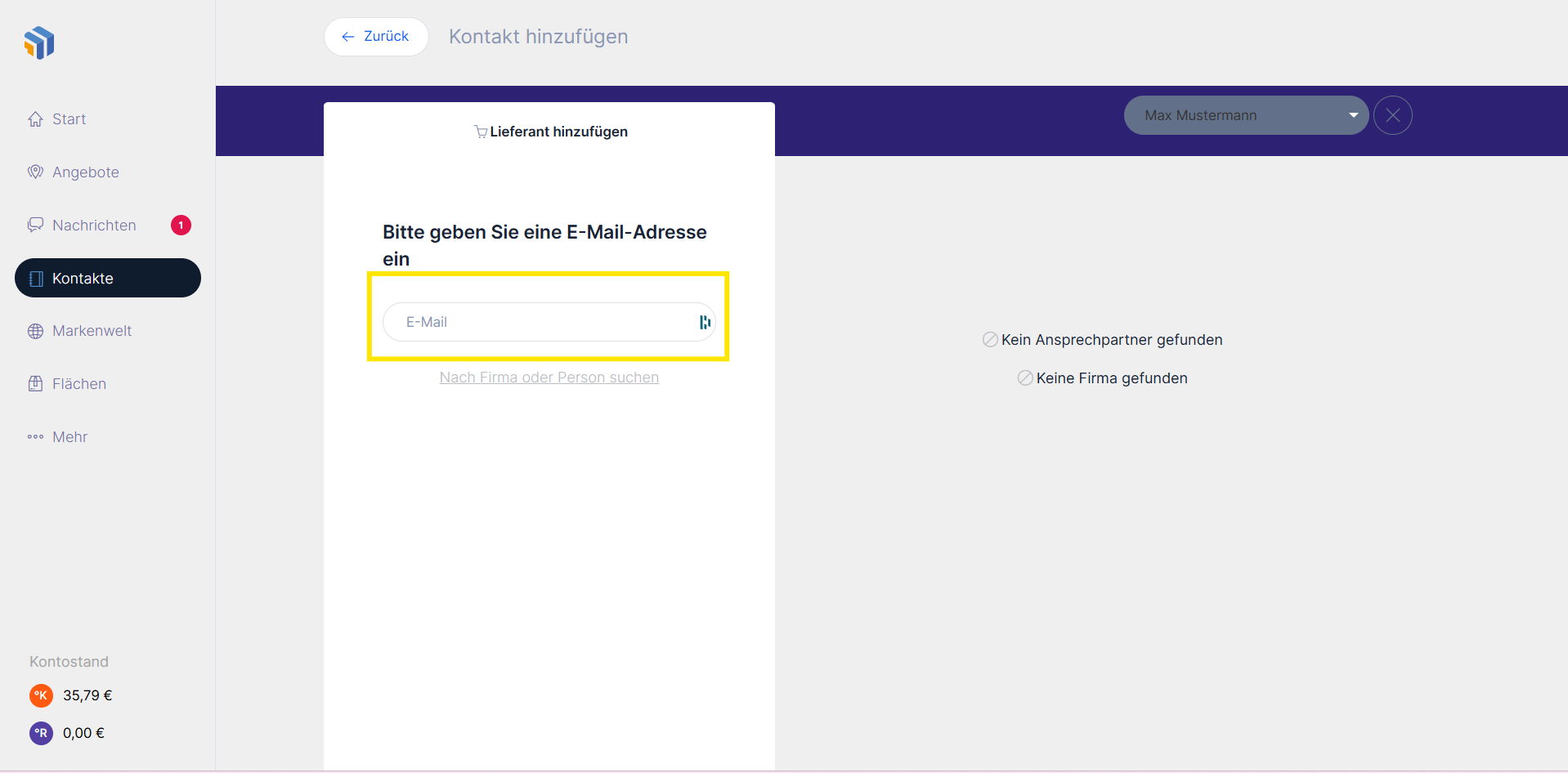 👉 Ergibt die Suche kein Ergebnis, ist der Lieferant noch nicht im Netzwerk registriert.