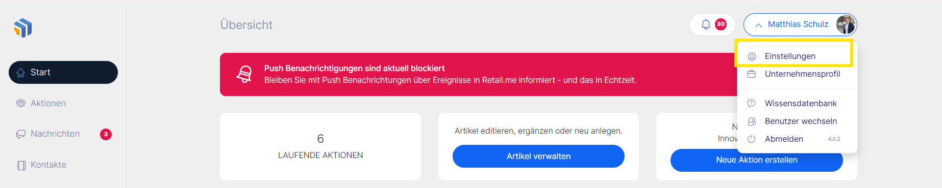 📌 Hinweis: Das Wiki zeigt die Nutzung von Retail.me in der Desktop-Version. In der mobilen Ansicht kann die Darstellung abweichen.
