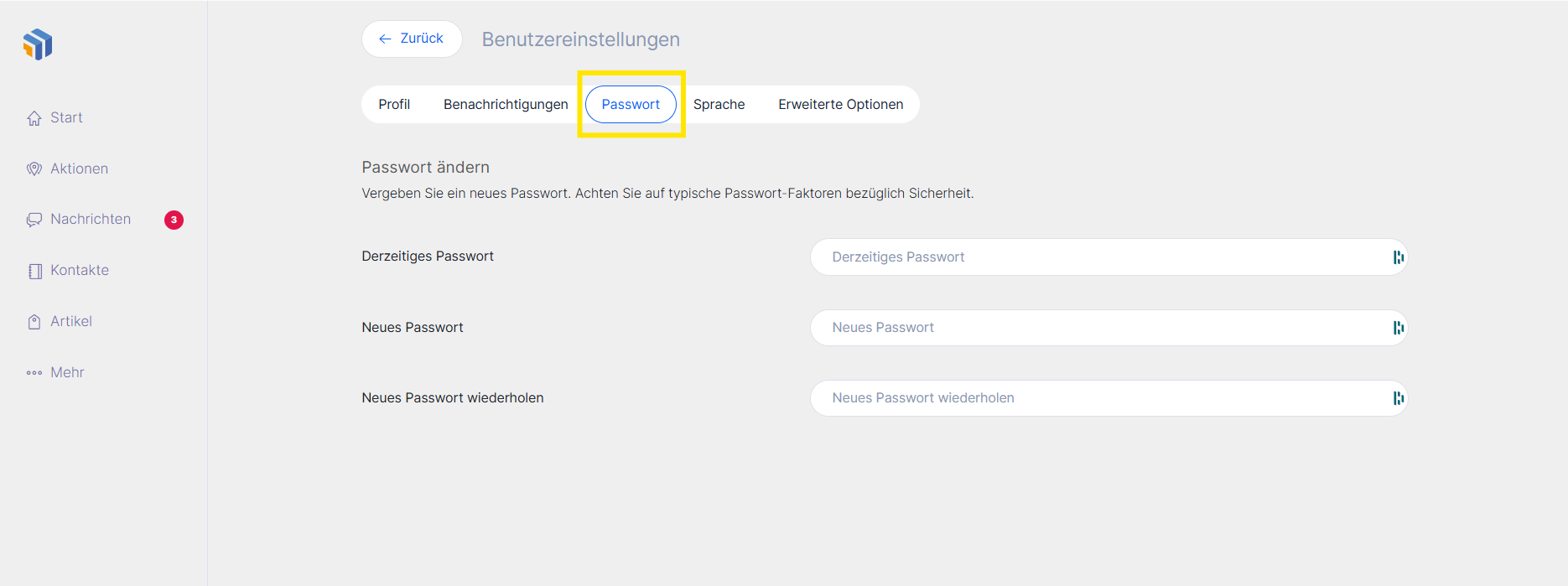 Wählen Sie nach dem Login den Bereich Passwort ändern.