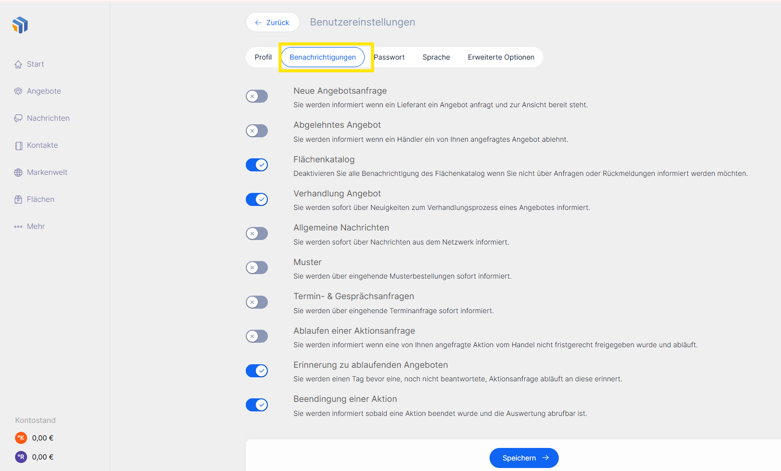 Aktivieren oder deaktivieren Sie die gewünschten Benachrichtigungen.