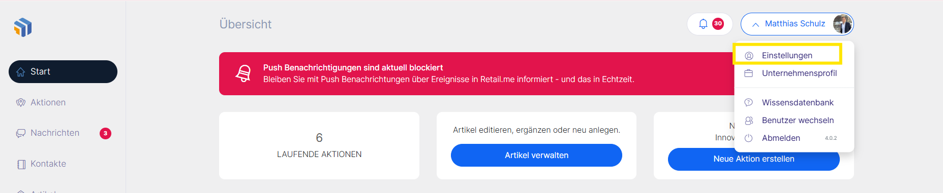 Wenn Sie Retail.me als App nutzen, können Sie zusätzlich Push-Nachrichten aktivieren, um jederzeit tagesaktuell informiert zu bleiben.