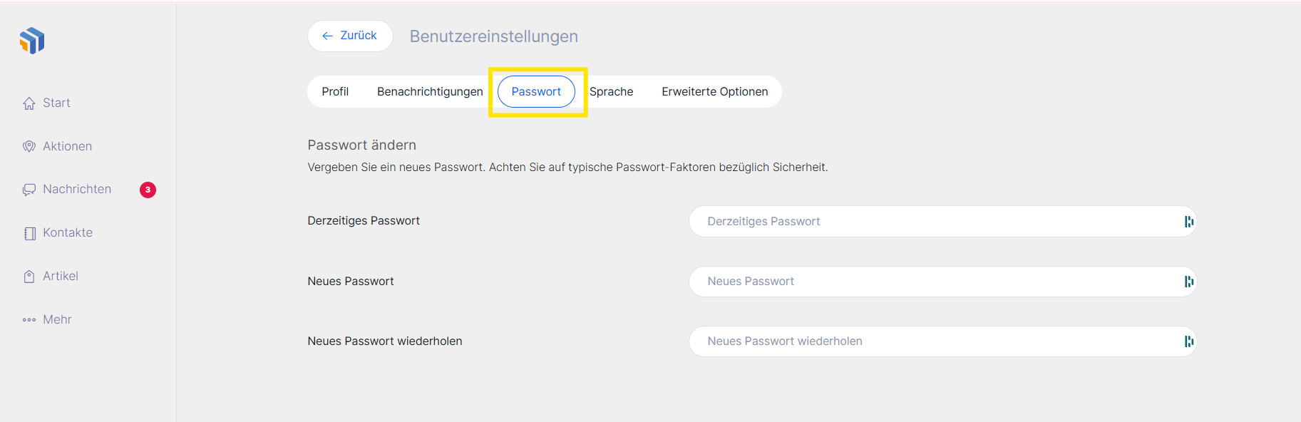 In den Benutzereinstellungen können Sie außerdem jederzeit Ihr Passwort ändern. (Abb. 4)