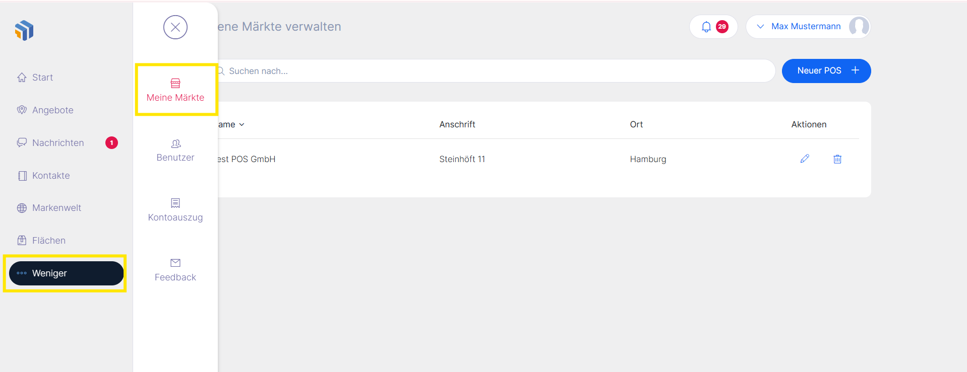 Als Mehrbetriebsunternehmer (Filialist) können Sie Ihre Märkte in Retail.me anlegen und verwalten. So behalten Sie die Kontrolle über eingehende Angebote, Bestellmengen und können Entscheidungen für Ihre Märkte zentral treffen.