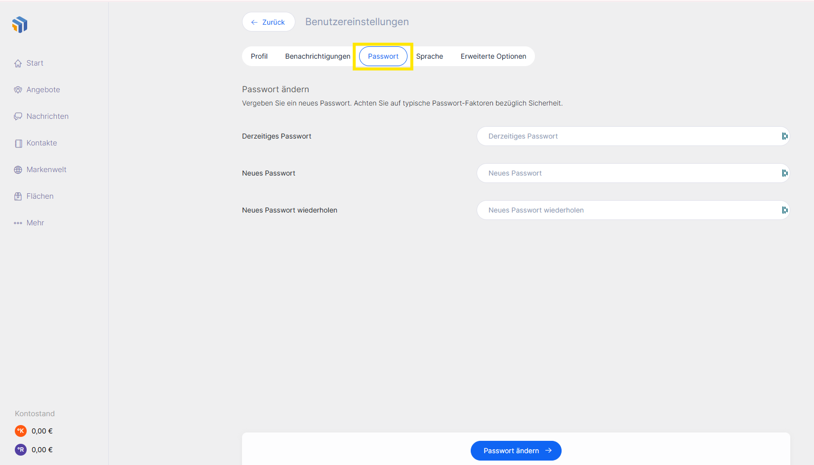 Speichern Sie die Änderung mit dem blauen Button „Passwort ändern“ – anschließend erhalten Sie eine Bestätigung.