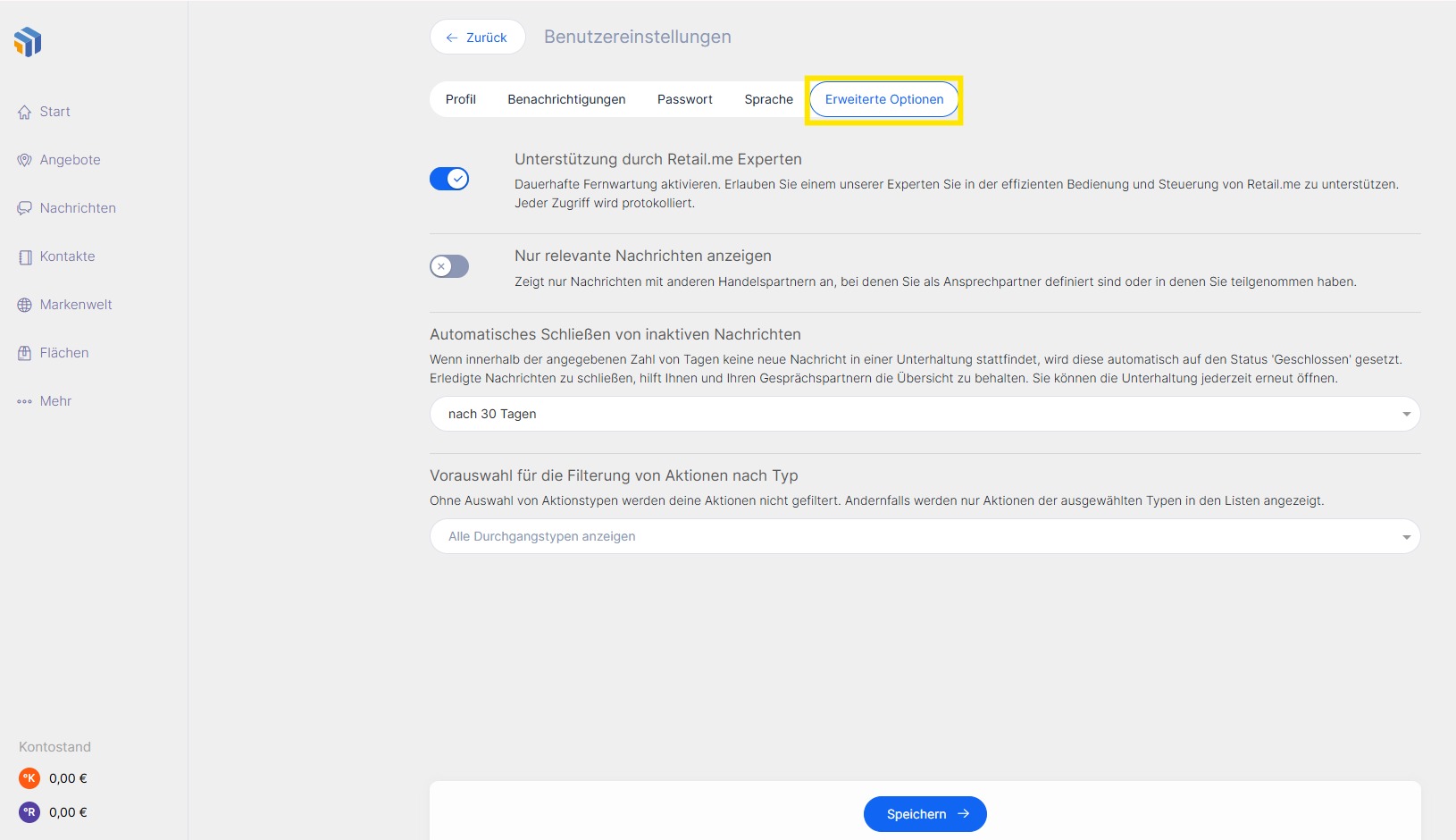 👉 Tipp: Wenn Sie Retail.me als App nutzen, können Sie zusätzlich Push-Nachrichten aktivieren.